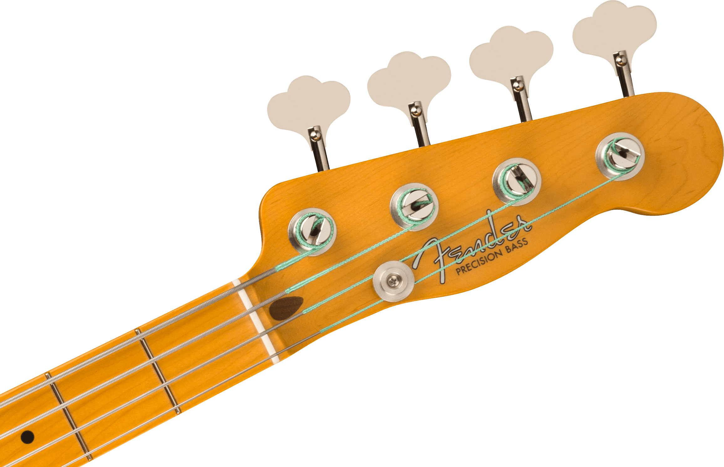 altre caratteristiche chiave includono un solido manico in acero con profilo 54 c e tastiera con raggio da 7.25, e tasti con altezza vintage. il ponte a 2 sellette pure vintage con sellette in fibra, meccaniche reverse con ingranaggi a vista, appoggio del dito e pickup 54 single-coil precision bass ricreano il classico suono imponente e lo stile fender.